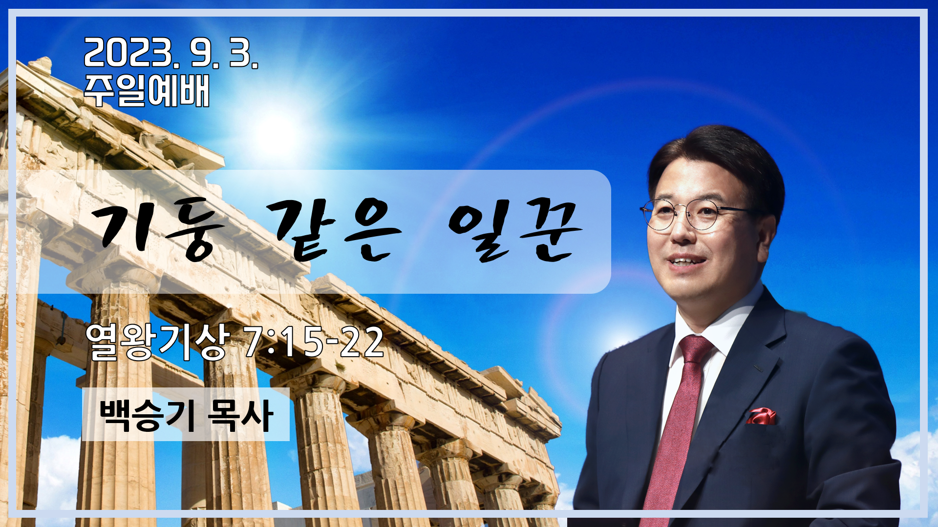 기둥 같은 일꾼 (열왕기상7:15-22) 백승기 목사 [부산백향목교회 주일예배] 2023. 9. 3